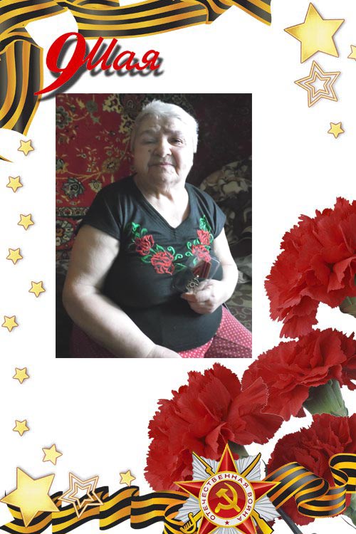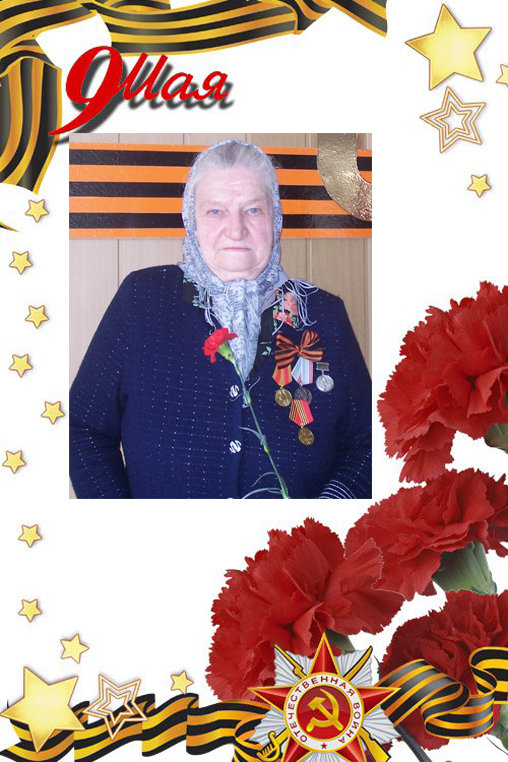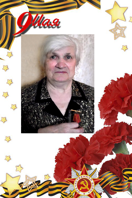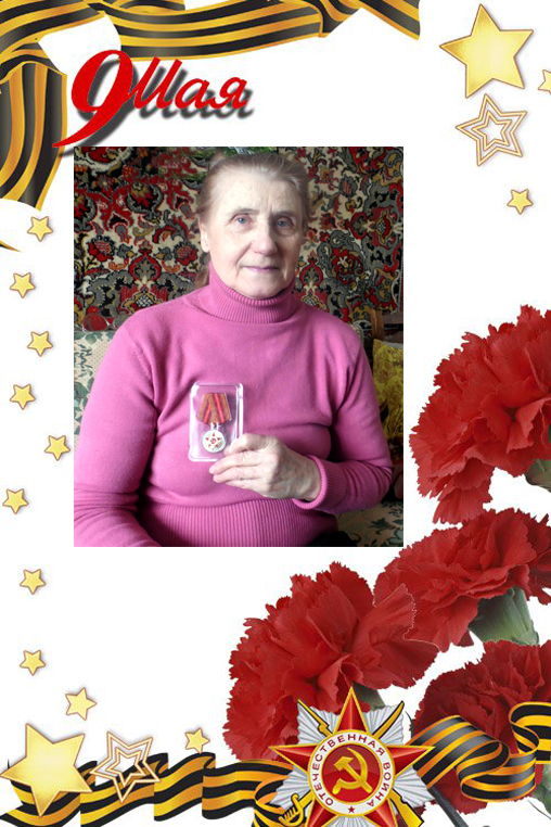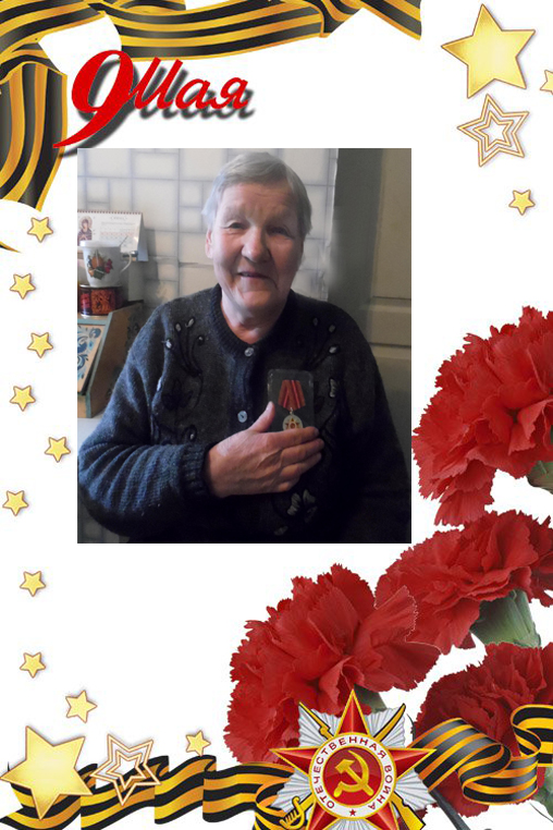 Является участником трудового фронта. С 15 лет работала прачкой на фронте.